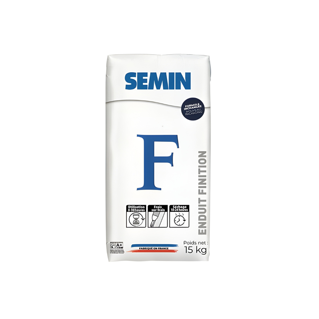 L’enduit de finition SEMIN FIN est un enduit en poudre spécialement conçu pour la finition intérieure des murs et plafonds. Sa texture fine et sa formule professionnelle à base de plâtre, carbonate de calcium et résine redispersable garantissent une excellente glisse et une qualité de définition optimale, permettant d’obtenir des surfaces parfaitement lisses avant peinture.