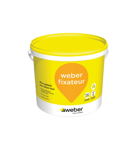 Le Weber Fixateur 20 kg est un micro-gobetis d’accrochage spécialement formulé pour améliorer l’adhérence des enduits monocouches sur supports lisses, tels que le béton. Il constitue un primaire d’adhérence essentiel avant l’application de revêtements de façade pour garantir une accroche optimale des enduits.
