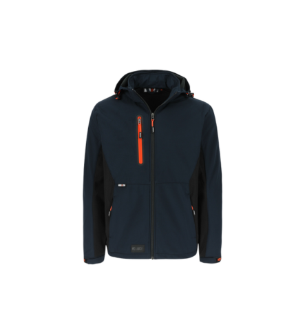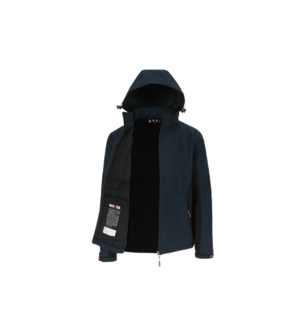 La TRYSTAN softshell bleu marine/noir associe confort, durabilité et style. Son tissu softshell triple couche protège du vent et de la pluie tout en offrant une grande liberté de mouvement.